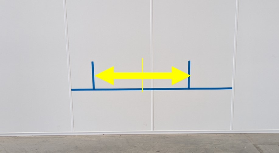 - Apply tape to the floor at ~ 7.6 m (25 ft) from the wall.