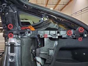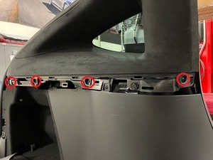 安装将左侧 C 柱上饰板固定到支架的紧固件