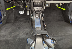 2 个推拉式夹;将驾驶舱地毯左侧和右侧远离前门槛饰板放置