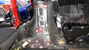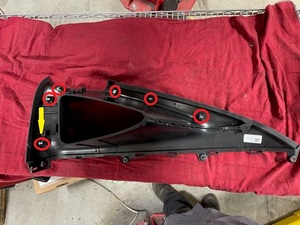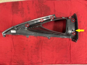 6 个卡子,7 个定位销;最后再拆下底部卡子并将其向后拉,确保操作中不移位