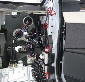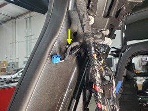 沿左侧 B 柱饰板将左前门密封条安装到位