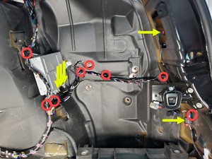 调整座椅位置,以便能够着座椅底部下方,然后从座椅控制器上断开右侧车身线束。