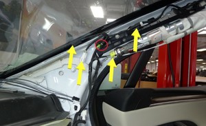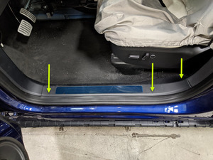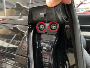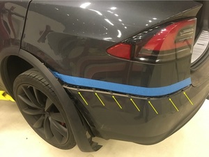 从右侧下部 C 柱和门框硬盖板上撕下保护胶带
