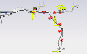 6 个卡子,7 个固定销,由于需朝前对齐,应首先固定底部卡子