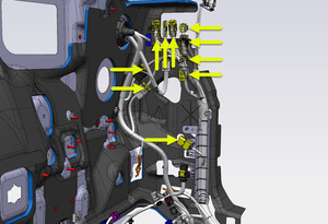 5 个卡子,更换损坏的卡子,将底板后端安装到位并固定卡子