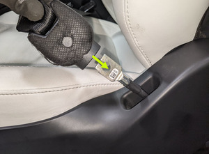 调整座椅位置,以便能够着座椅底部下方,然后将左侧车身线束连接到座椅控制器上