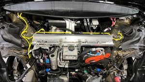 拆卸将左前减震塔盖固定到减震塔的螺栓,然后将盖子从车辆上拆下。