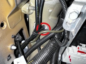 注在拆卸之前,将键控接地带插入右前减震塔盖。 -