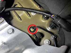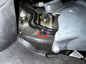 注一旦可以听到漏气的声音,就停止转动,直到所有的气被释放。 - 松开将前管束固定到左侧减震塔总成的卡子。