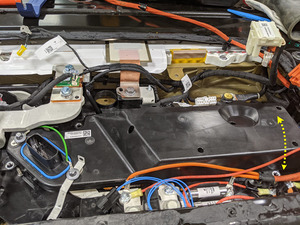 - 拆下高压电池前检修板。请参阅盖板 - 前维修孔 - 高压电池(拆卸和安装)。