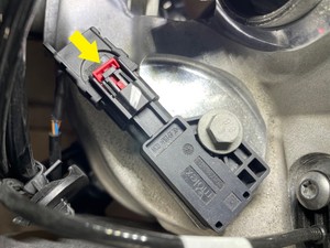 - 将左侧电子驻车制动器 (EPB) 电气连接器连接到左侧制动钳电机,然后固定连接器锁。