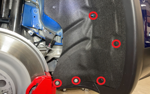 拆下螺栓(2 个)并松开将左后轮拱内衬后部连接到车辆的卡子(3 个),然后将衬板移到一边。