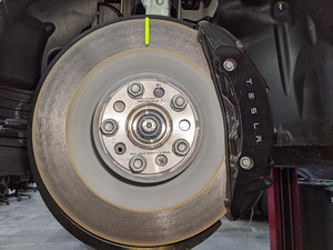 从前制动盘端部向内测量 10 毫米并对齐数字指示器。按下指示杆和零位测量。