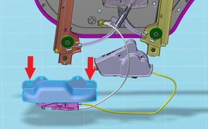 - 将左后车门车窗电机放置到封闭板背部,然后紧固用于将电机固定到封闭板上的锁片。