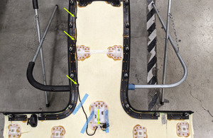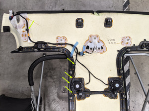 - 将顶篷线束放入顶篷中,然后固定将线束连接到顶篷的卡子和锁片(6 个)。