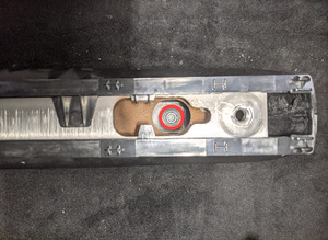 用一字螺丝刀逆时针转动前座椅安全带联动装置的锁止机构,以便将其从预紧器松开,然后将联动装置从预紧器上滑下并将其放置在一旁。
