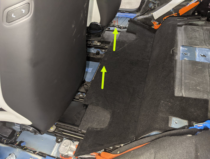 - 拆卸第二排脚垫。请参阅 脚垫 - 第二排(拆卸和更换)。