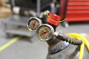 打开氮罐上的阀门,用调节器将压力调到 18 Bar。