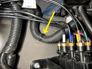 - 松开固定车身线束的卡子,然后将线束移到一边,以接触到空气悬架阀块。