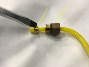 注将螺纹部分向后滑动,取出夹头,然后将螺纹部分从空气管路上滑下。拆下后弃用。