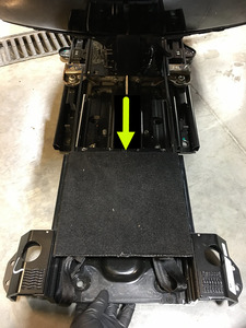 - 松开用于将毡毯固定到左侧第二排座椅滑轨上的塑料导件(2 个),然后将毡毯从座椅滑轨上拆下。