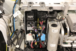 拆下用于紧固低压电池的紧固件,然后拆下总成