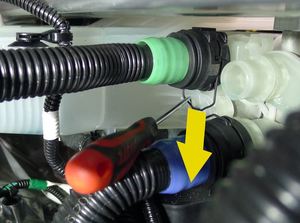 松开左侧雨刮器臂软管喷嘴