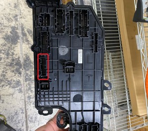 - 将前备箱储物单元电气连接器从左侧车身控制器模块上断开。
