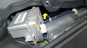 注旋转低压电池,将其移动到前围篦板和空气悬架储气罐之间。