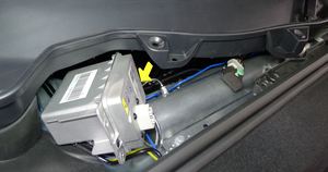 注旋转低压电池,将其从前围篦板和空气悬架储气罐之间移出。
