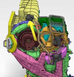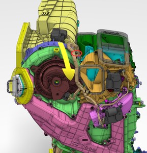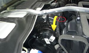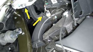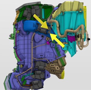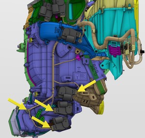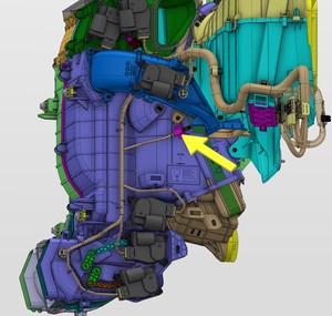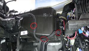 注1 个锁片。首先在顶部固定至驾驶位左侧跳线底板风管,然后安装至暖通空调 (HVAC) 外壳上。