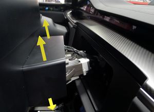 注3 个锁片。向外滑动显示器,直到护罩完全脱离仪表板和支撑;松开底部锁片并向上拉。