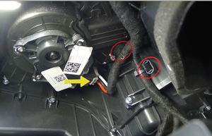 注1 个连接器,2 个锁片。将暖通空调 (HVAC) 线束固定到外壳上。