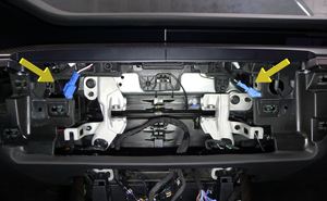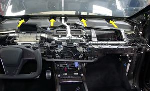 注4 个固定销。将仪表板总成滑入车内;确保副驾位气囊和驾驶位出风口总成有通过下部仪表板分总成的间隙;建议请助手帮忙。
