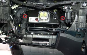 注2 个螺栓,10 mm,11.5 Nm。将中央显示器滑入仪表板支架;从右侧螺栓开始安装。