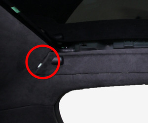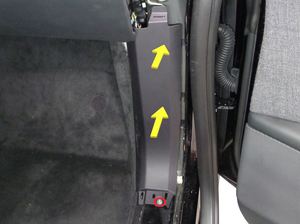注2 个卡子,3 个固定销。从上部 A 柱和仪表板分总成上松开卡子;提起 A 柱中饰板将其与 A 柱下饰板分离。