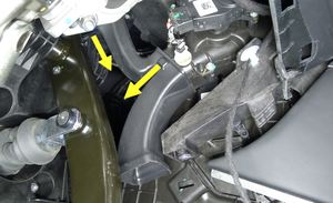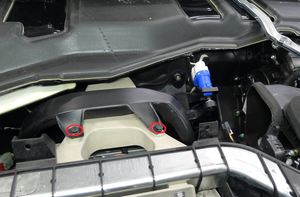 注2 个螺钉,T20,1.5 Nm;1 个卡子,1 个固定销。向后滑动下部护罩以接合固定销。