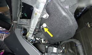 拆下将左侧膝部气囊总成固定到车辆的紧固件。