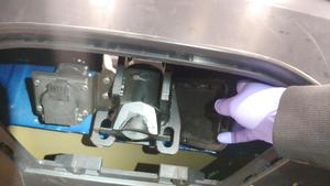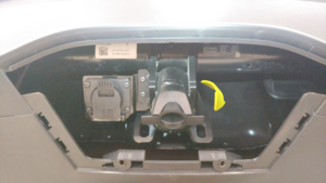 - 将左后方内侧抽气机安装到车辆上,将抽气机插入拖车挂钩右侧,然后将抽气机与车身对齐。