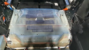 从车上拆下后电机舱隔音板。