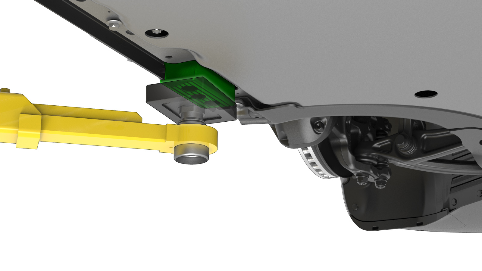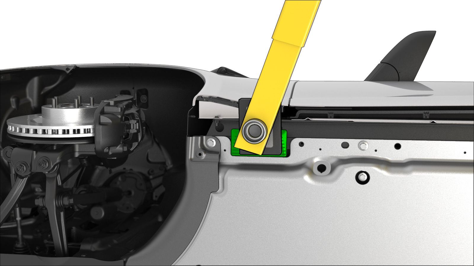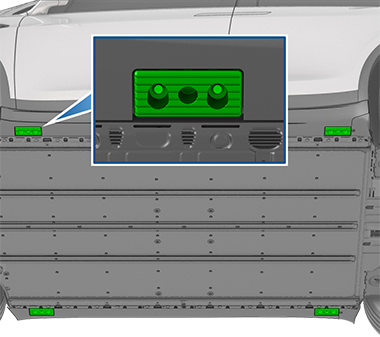- 如图所示,将前后举升臂衬垫放置在高压电池上的车辆升降点上。