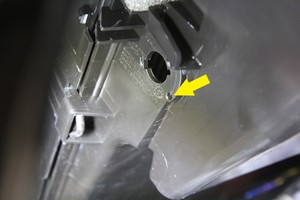 - 使用塑料饰件工具将空气质量传感器底部的锁片从凹槽中提出,将空气质量传感器逆时针旋转45度,然后将传感器从管道中取出。