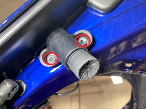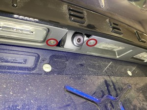 安装新的螺栓(2 个),将后视摄像头安装到掀背车门支架上。