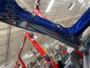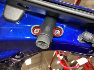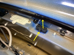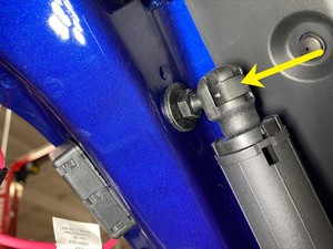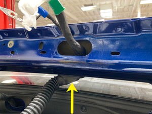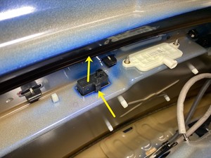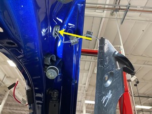 - 将掀背尾门左右侧下部保险杠止动销安装到掀背尾门上。