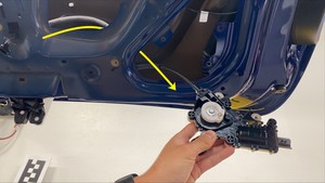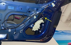 将电缆连接到掀背车门强力闭锁传动装置上,然后将传动装置放置到掀背车门上。