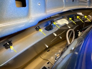 - 安装将掀背尾门电气线束固定到车身的夹子(5 个)。