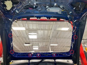 - 将掀背尾门左右下部保险杠从掀背尾门上拆下。