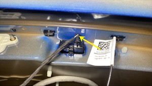 - 松开锁片,然后断开掀背车门线束电气连接器(4 个)。