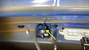 - 从掀背车门总成上松开卡子,然后断开高位制动灯电气连接器。