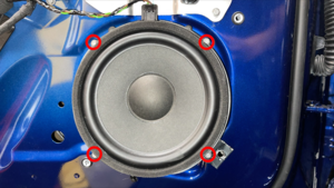 拆下用于将左前门扬声器固定到左前门上的螺栓(4 个),然后将扬声器从车门上拆下。